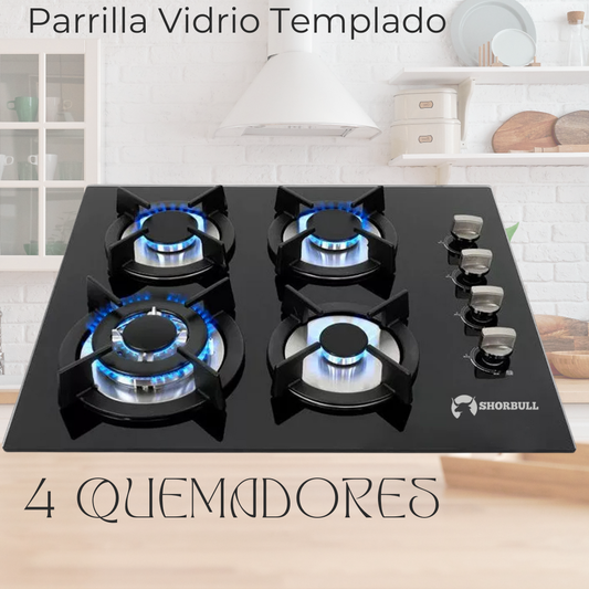 Parrilla Estufa Empotrable con 4 Quemadores de Vidrio Templado