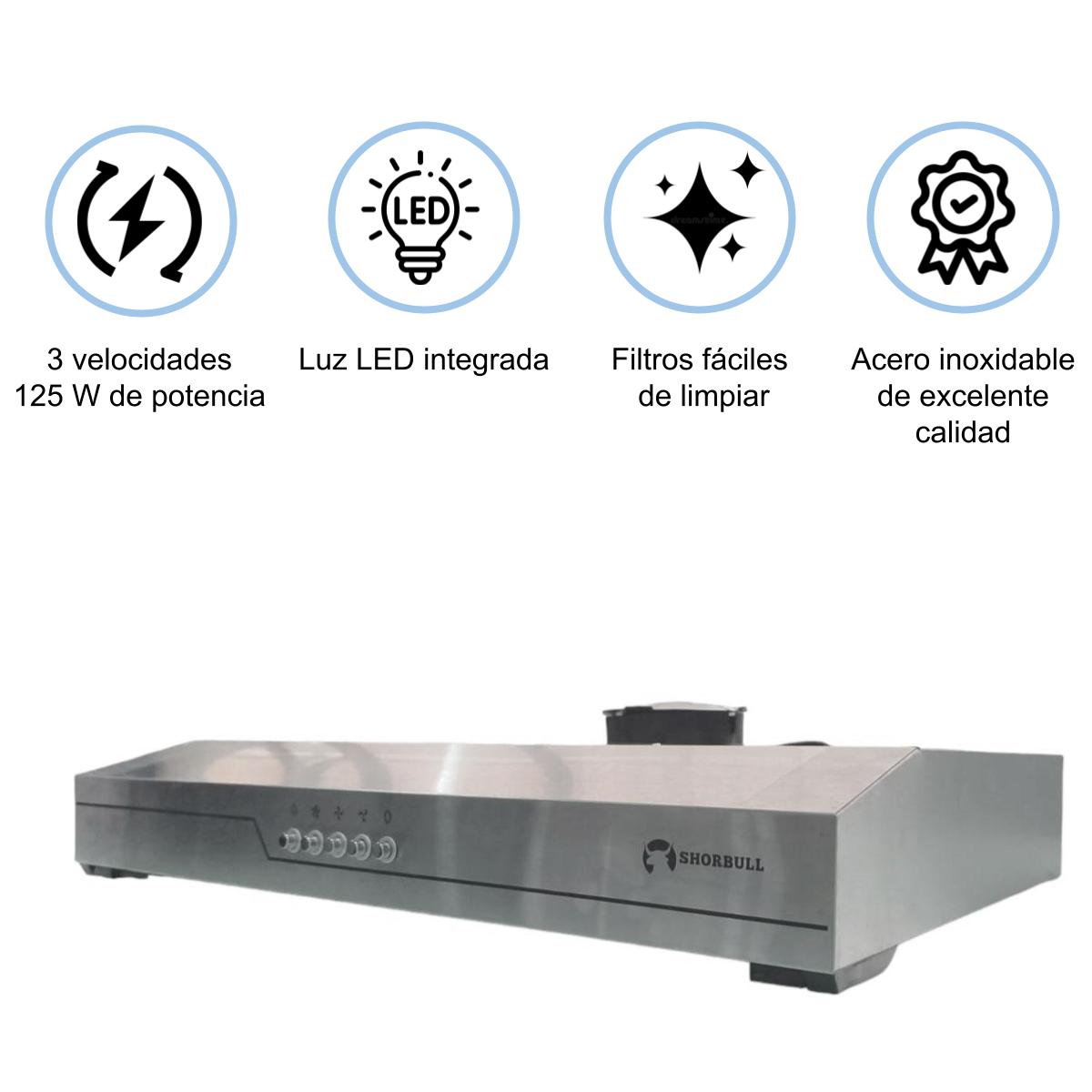 - Funcionalidad: Sistema de aspiración perimetral que garantiza una mayor eficiencia en la extracción de olores y humos, además de reducir el ruido renovando el aire de tu cocina, manteniéndolo fresco y libre de olores.