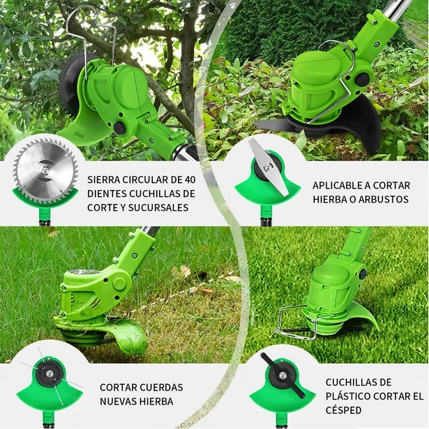 Si buscas una forma rápida y eficaz de mantener tu jardín en perfecto estado, la Cortadora de Césped y Desbrozadora Inalámbrica es la solución ideal para ti. Diseñada con un motor de cobre puro de alta potencia y dos baterías recargables de litio, este equipo te ofrece una gran autonomía y un rendimiento excepcional para eliminar el pasto crecido y las malas hierbas sin esfuerzo.
