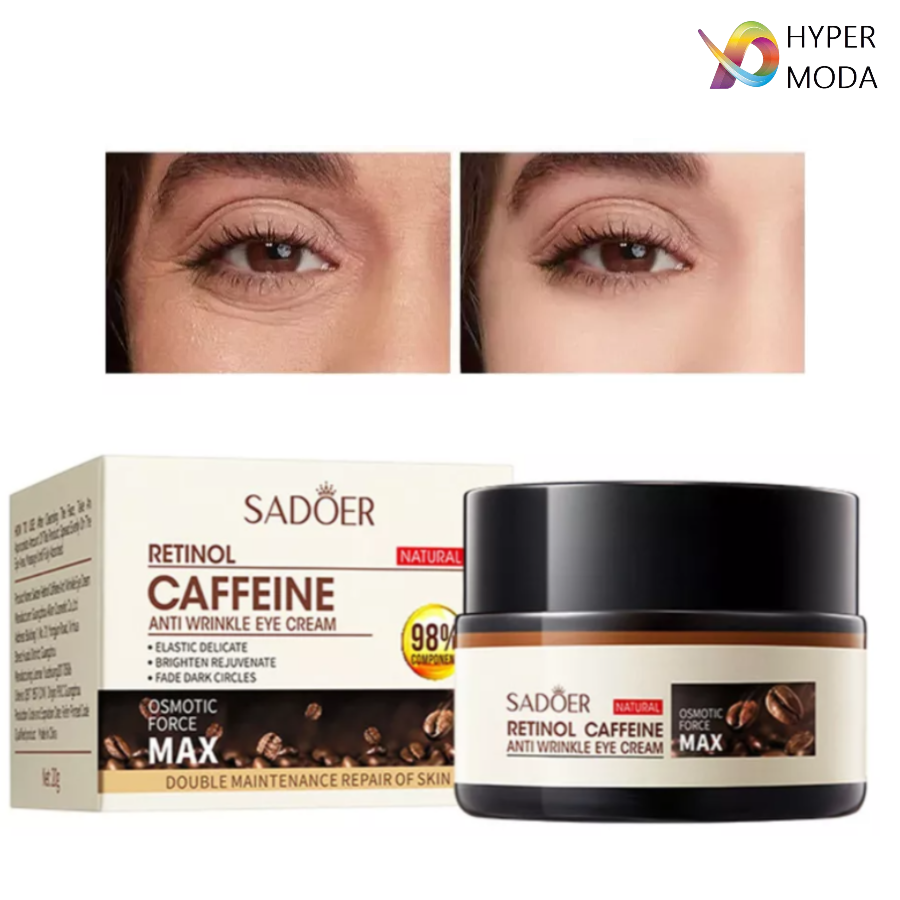 HYPER MODA Crema Contorno De Ojos Retinol Y Cafeína Natural Descripción:La crema de contorno de ojos es una fórmula avanzada diseñada para revitalizar y mejorar el aspecto de la zona ocular. Enriquecida con retinol y cafeína, esta crema actúa de manera eficaz para reducir visiblemente las arrugas, líneas finas y ojeras. Además, descongestiona e hidrata la delicada piel alrededor de los ojos, brindando una apariencia más fresca y rejuvenecida. Su fórmula ligera y de rápida absorción la convierte en una opción ideal para el uso diario.Especificaciones:Contenido: 20 g de crema para ojos.Ingredientes clave:Retinol: Estimula la renovación celular, mejorando la elasticidad y textura de la piel, mientras reduce la apariencia de arrugas y líneas finas.Cafeína: Ayuda a reducir la hinchazón y las ojeras, además de iluminar la zona del contorno de los ojos.Textura: Ligera y de rápida absorción, adecuada para el uso diario.Hidratación: Proporciona hidratación profunda en la delicada área de los ojos.Características:Combate las arrugas: El retinol ayuda a reducir visiblemente las arrugas y las líneas finas alrededor de los ojos.Reduce la hinchazón: La cafeína contribuye a disminuir la inflamación y la apariencia de ojeras, iluminando la zona.Mejora la elasticidad y textura: La fórmula está diseñada para mejorar la textura y elasticidad de la piel delicada del contorno de los ojos, manteniéndola suave y firme.Hidratación duradera: Contiene ingredientes hidratantes que mantienen la zona del contorno de los ojos hidratada y revitalizada.Aplicación: Se recomienda aplicar una pequeña cantidad de crema sobre el contorno de los ojos, utilizando el dedo anular para dar suaves golpecitos. Evita frotar el área para no dañar la piel delicada.Modo de uso: Utilízala dos veces al día (mañana y noche), tras la limpieza y tonificación del rostro. Se recomienda complementar con protector solar durante el día, especialmente si la piel es sensible al retinol.Esta crema es perfecta para quienes buscan mantener una mirada fresca, juvenil y libre de signos visibles de envejecimiento, ideal para su uso en cualquier rutina de cuidado de la piel. Garantía del producto: La garantía cubre únicamente productos que lleguen roto o incorrecto en un plazo de 10 días a partir de la entrega. Para poder hacer efectiva la garantía, el producto debe encontrarse en las mismas condiciones en las que fue recibido, con su empaque original, etiquetas intactas, y todos sus accesorios. Además, no debe mostrar signos de manipulación ni uso."El producto ha sido revisado y verificado en su totalidad antes de ser enviado a la bodega de despacho, garantizando su calidad y funcionamiento óptimo al momento de la entrega."Antes de subir la garantía, por favor envíanos un mensaje describiendo el problema. Así podremos verificar su funcionalidad y ofrecerte la mejor atención