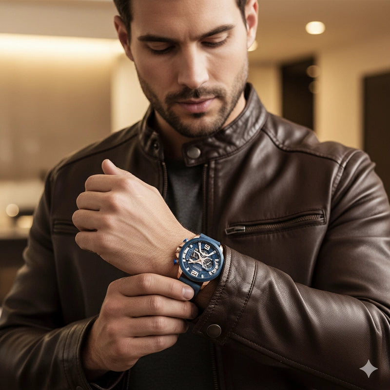 Diseñado para el hombre moderno que no sacrifica la elegancia por la funcionalidad. Descubre cómo este reloj redefine tu presencia y te acompaña en cada momento con un estilo inigualable.